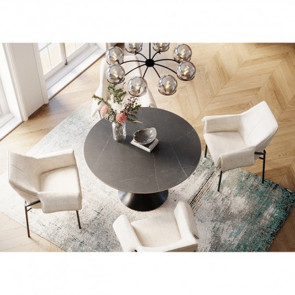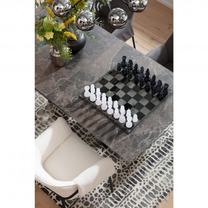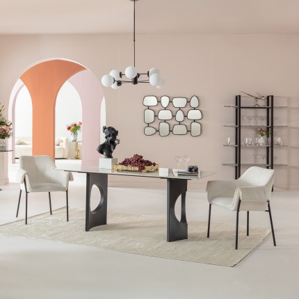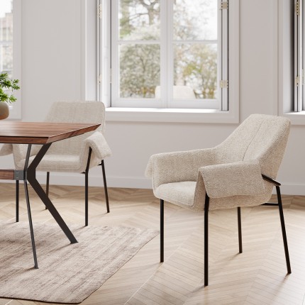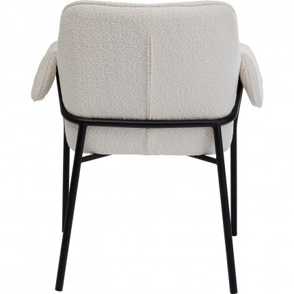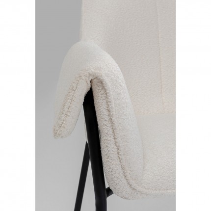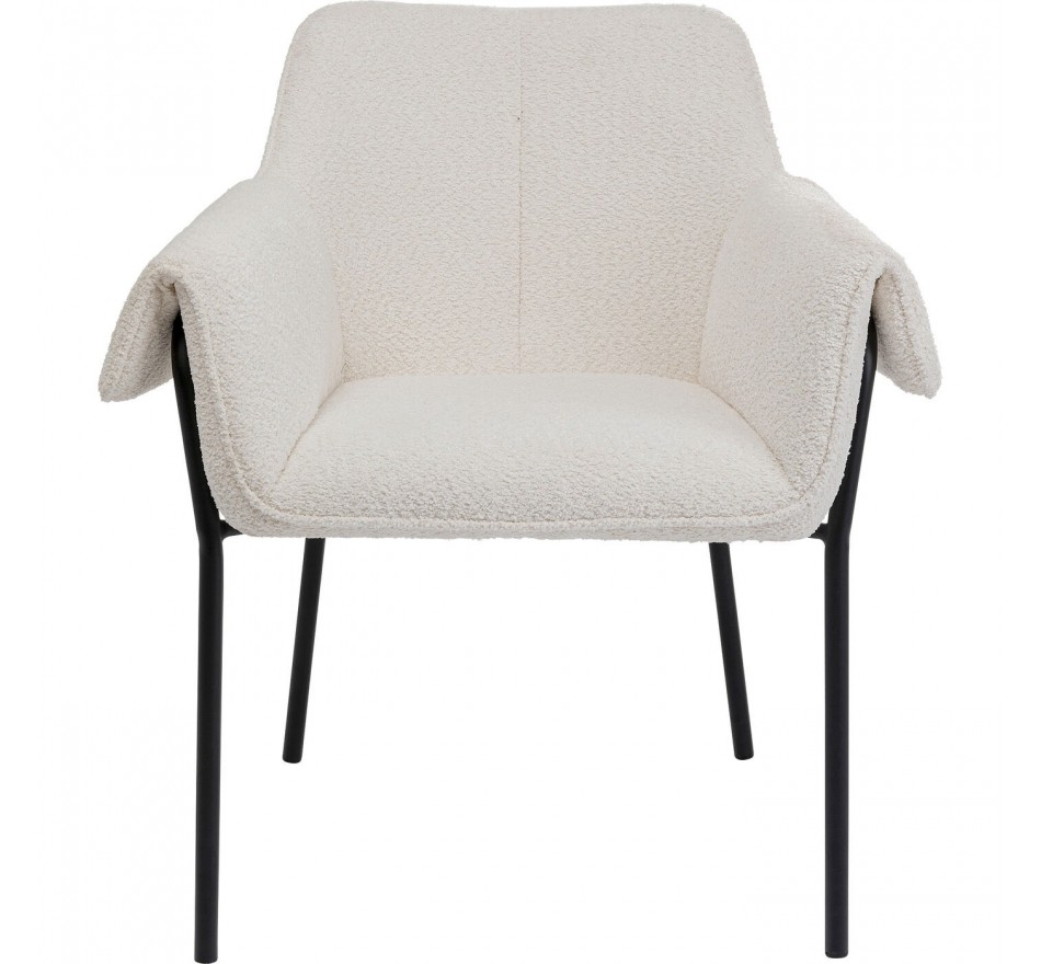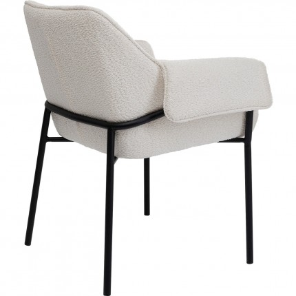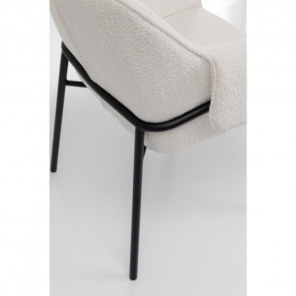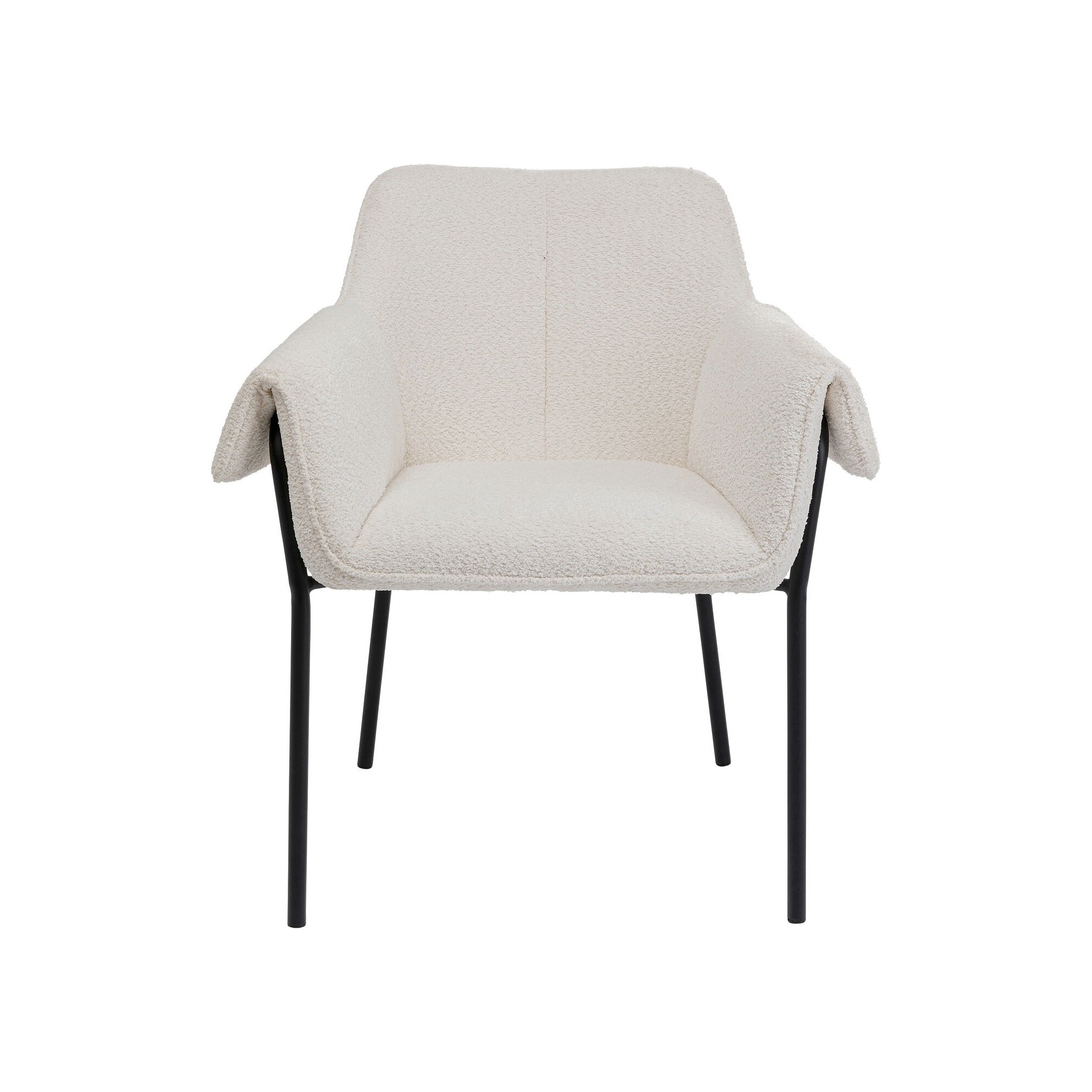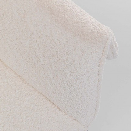 Deze stoel brengt een zachte en zen-sfeer in uw huis met zijn crème krullende stof.