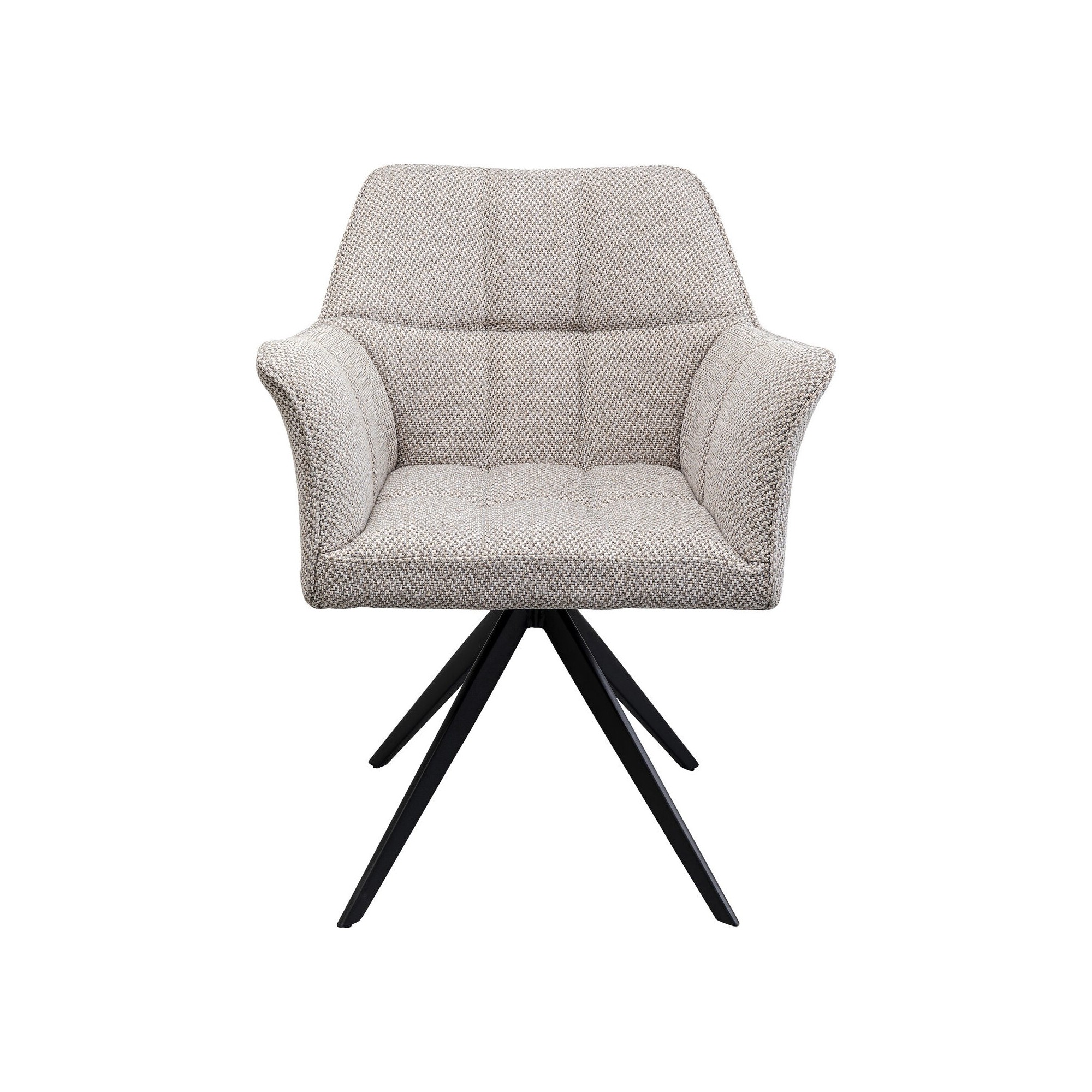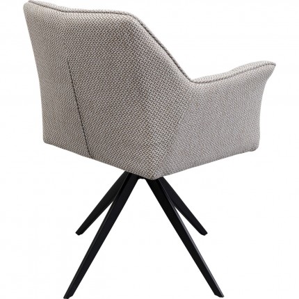 Met zijn grijze zitting van geweven stof zal deze stoel een aanvulling zijn op je moderne interieur. Met zijn armleuningen en draaibare stalen onderstel kan hij ook worden gebruikt als bureaustoel.