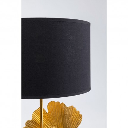 Deze tafellamp brengt een onmiskenbare elegantie in uw interieur dankzij de vijf gouden ginkgobladeren die rond de voet verstrengeld zijn, het geheel gecompleteerd door een zwarte lampenkap. Ontdek ook onze bokalen, vazen en andere lichten van de Ginkgo reeks!