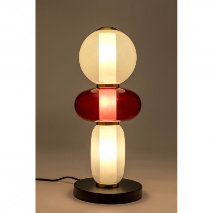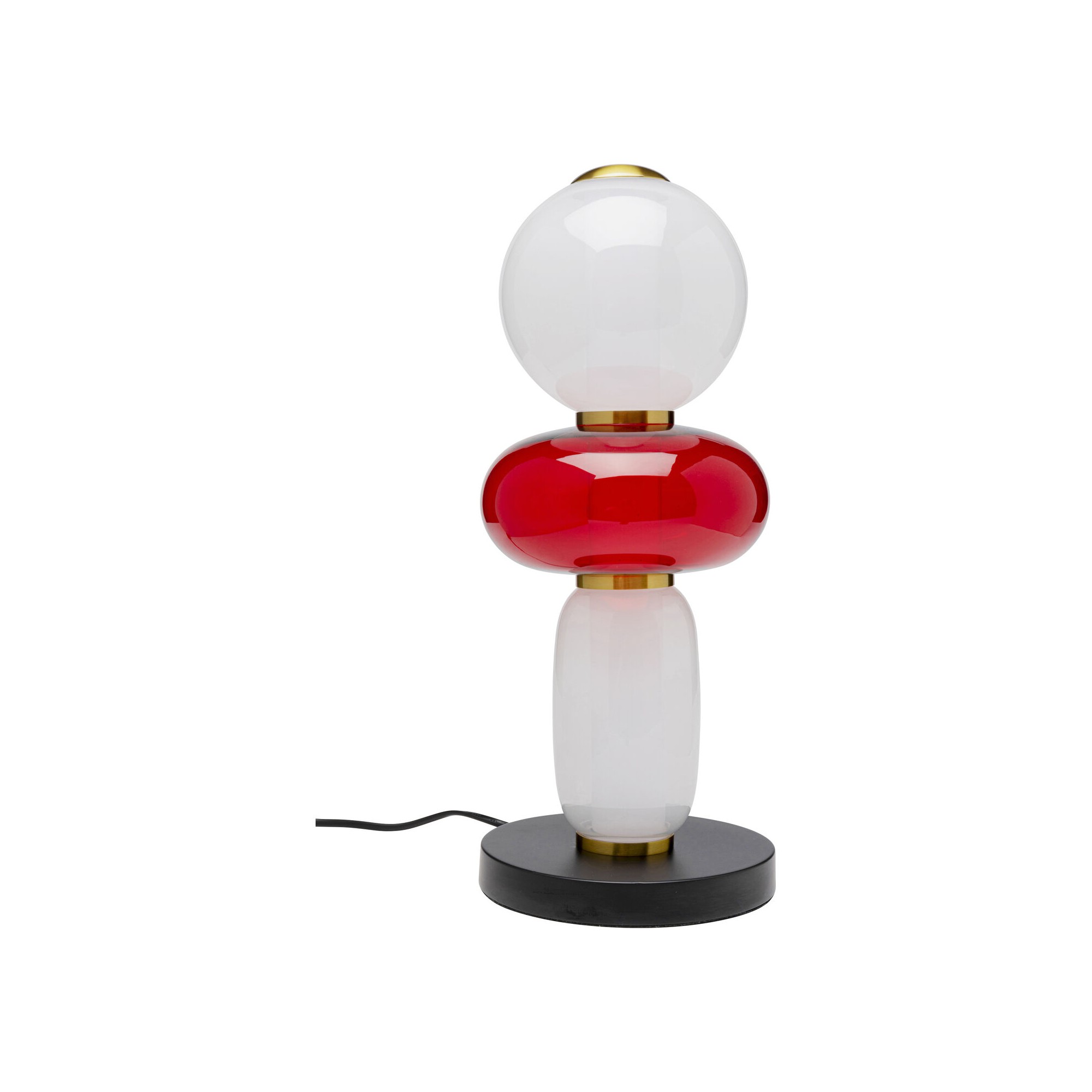 Haal een vleugje nostalgie in huis met deze retro lamp. De glazen kap bestaat uit drie delen, afwisselend wit en rood, en doet denken aan snoepvormen om zoetheid in huis te brengen.