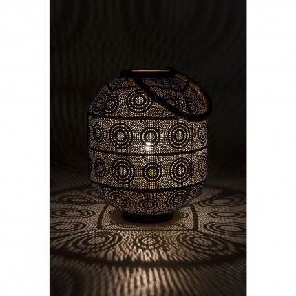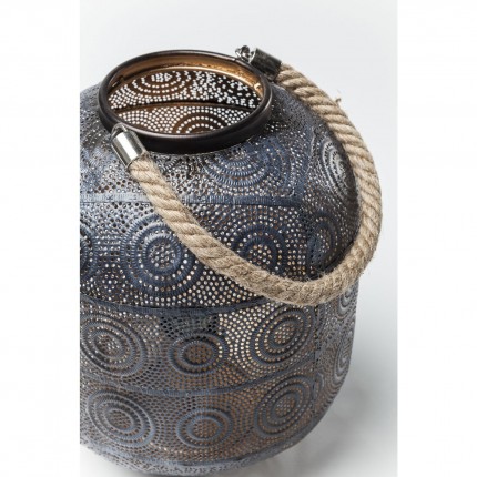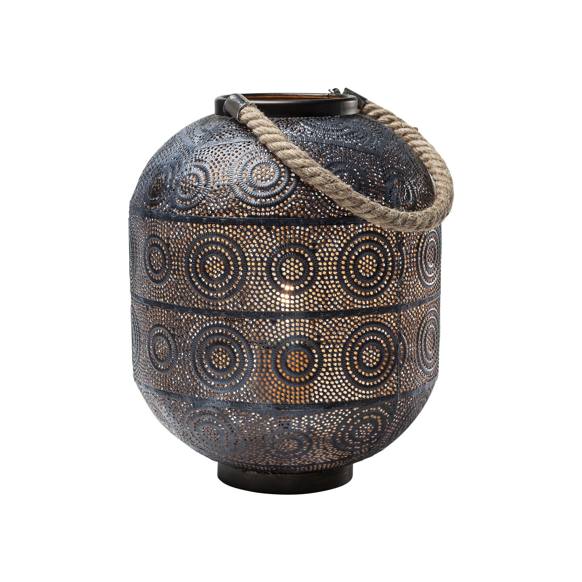 Ga voor de ontwerp oosters ontwerp van deze lamp in zwart gelakt staal. Het creëert sfeer die u uitnodigt om te ontsnappen en te ontspannen in uw interieur. Met zijn handvat van touw kan hij gemakkelijk worden verplaatst tussen binnen en buiten.