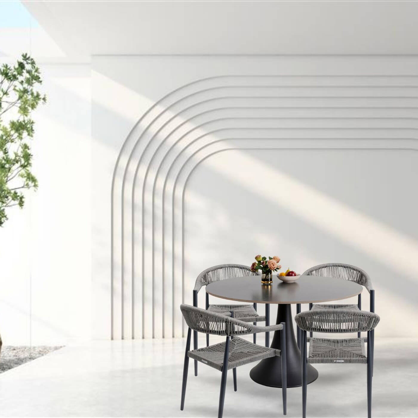 • Tuinmeubilair Grande Possibilita tafel 120cm en 4 stoelen grijs Kare Design