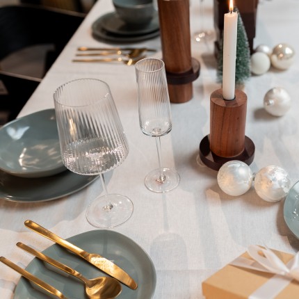 Voeg een vleugje glamour toe aan je tafel met deze serie glazen, die zich onderscheiden door hun fijne strepen en een verfijnd spel van licht en textuur bieden. Deze waterglazen, wijnglazen en champagneglazen geven je maaltijden een vleugje glamour.