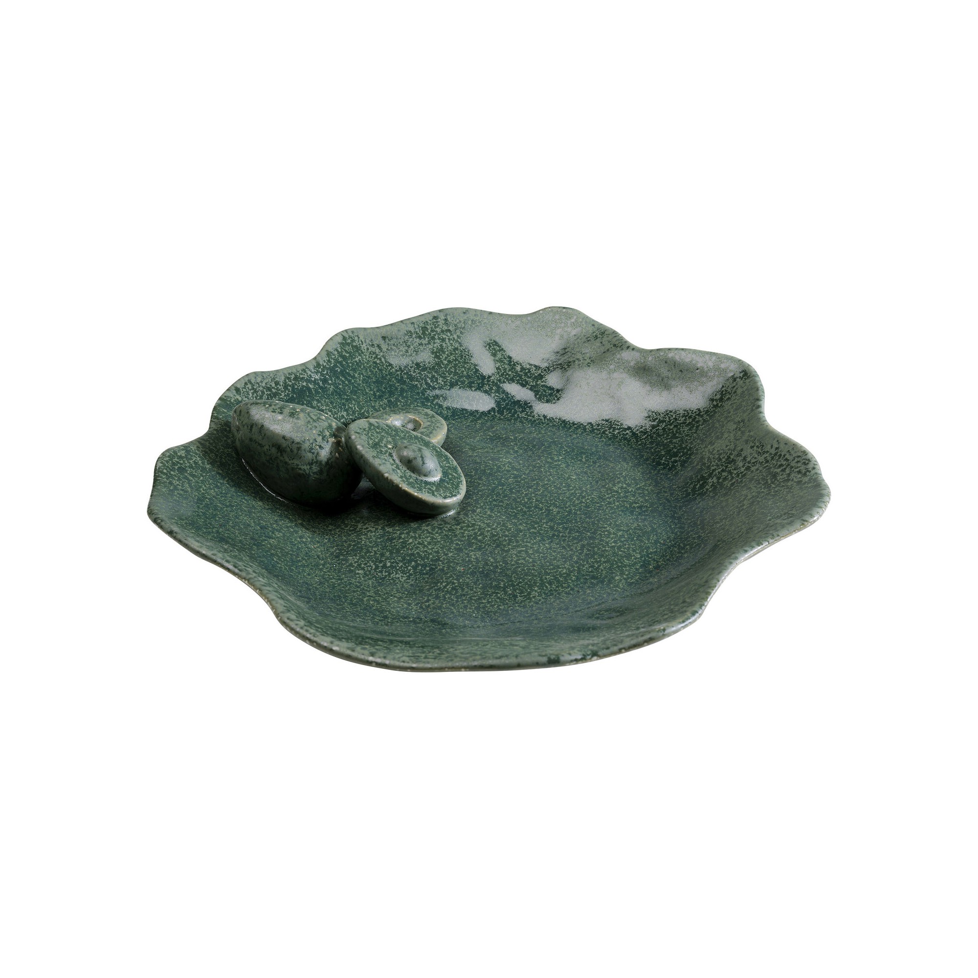 Ce plat rond en céramique montre à quel point les couleurs et les formes naturelles peuvent embellir votre intérieur. Son design organique, sa céramique peinte et ses avocats en relief lui confèrent son charme enchanteur et sa grande qualité. Utilisez-le pour embellir la décoration de votre table à manger ou de votre comptoir de cuisine. Il offre également d'autres fonctionnalités, par exemple comme rangement pour vos bijoux ou dans le couloir comme réceptacle pour votre téléphone portable, vos clés et autres petits objets.