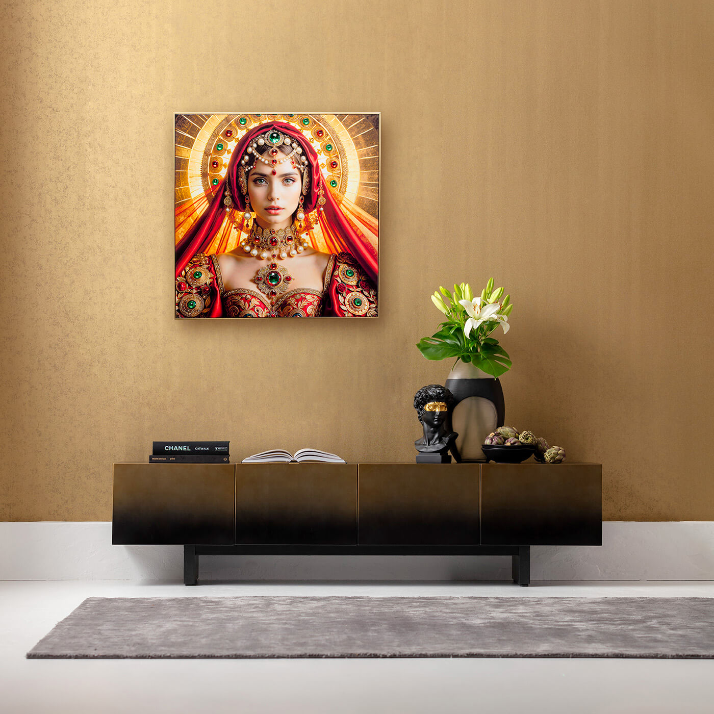 Véritable accroche-regard, ce tableau allie art et luxe en un seul chef d'oeuvre. La combinaison harmonieuse des couleurs or et rouge rayonne de chaleur et d'élégance tandis que le motif expressif impressionne par son souci du détail. Des perles et le cadre doré raffiné ajoutent une touche glamour à cette oeuvre d'art. Que ce soit dans un salon élégant, une chambre à coucher exclusive ou un couloir haut de gamme, ce tableau attirera l'attention de tous et conférera à chaque pièce une atmosphère particulière.