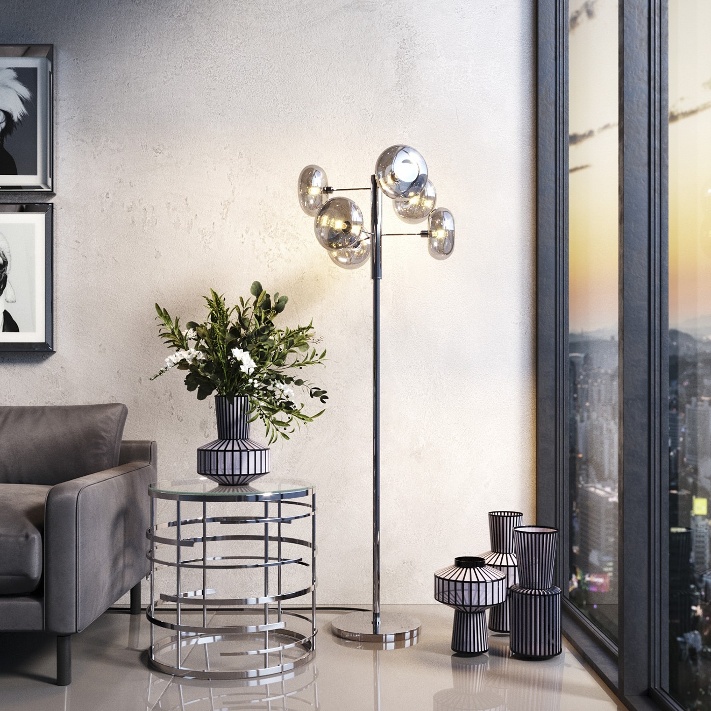 La gamme Roulette vous propose plusieurs formes de vases en verre satiné décoré de rayures gris mat et noir brillant. La collection apporte un style Art Déco élégant à votre intérieur.