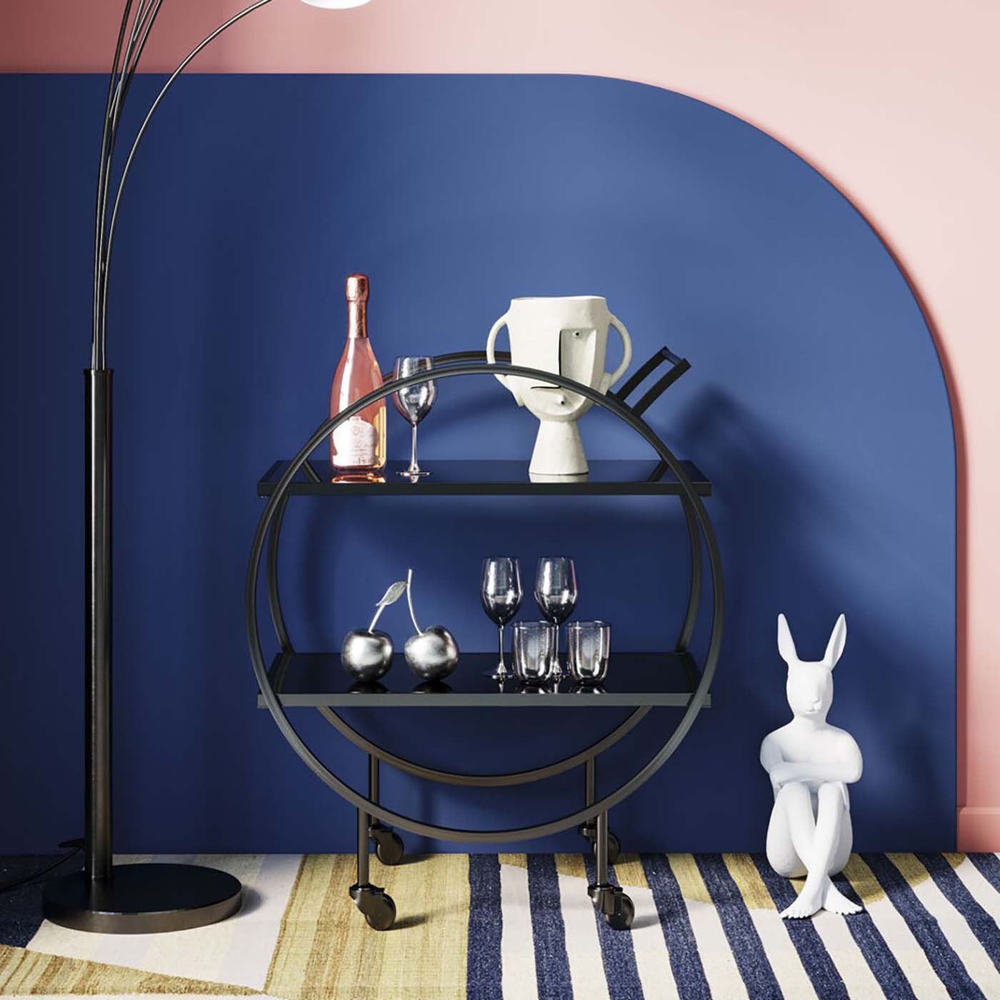 La collection Night Sky propose un set de flûtes à champagne, de verres à vin blanc, à vin rouge, à eau et à cocktail pour une table harmonieuse. Leur base semble comme trempée dans de l'argent liquide.